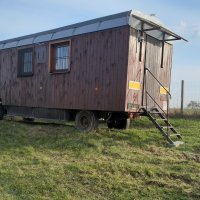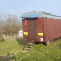 - Není. Ale v maringotce je zřízen ostrovní fotovoltaický systém 12V, sloužící k zajištění osvětlení uvnitř i venku, čerpání užitkové vody do dřezu a dobíjení mobilních zařízení (USB zásuvka)