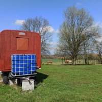pitná voda - Jakmile dorazíte na pozemek, rádi vám přivezeme 20-ti litrový kanystr s výpustným kohoutem s pitnou vodou. U maringotky je nádrž na užitkovou vodu.