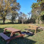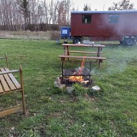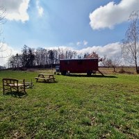 Na pozemku poblíž maringotky je možné postavit stany nebo karavany a může se tu sejít i větší skupina lidí, třeba velká rodina, přátelé, skauti, cyklisti.... Vždy tu bude ale jen jedna skupina lidí, nikdo jiný Vaše soukromí rušit nebude. K dispozici je suché WC, užitková voda, dřevěné posezení, ohniště a dostatek dřeva.
