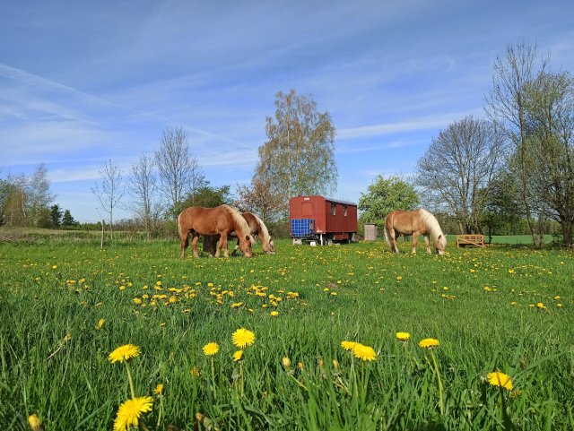 Zažijete romantické západy slunce v klidném prostředí v bezprostřední blízkosti ohrady s koňmi. Ráno Vás probudí zpěv ptáků a šumění větru ve větvích stromů...