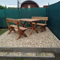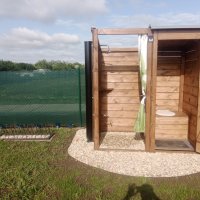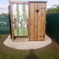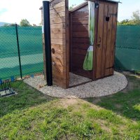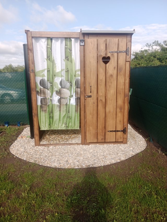 - Solární sprcha s 35 l vody na oblázkových kamenech.