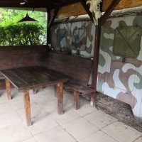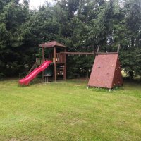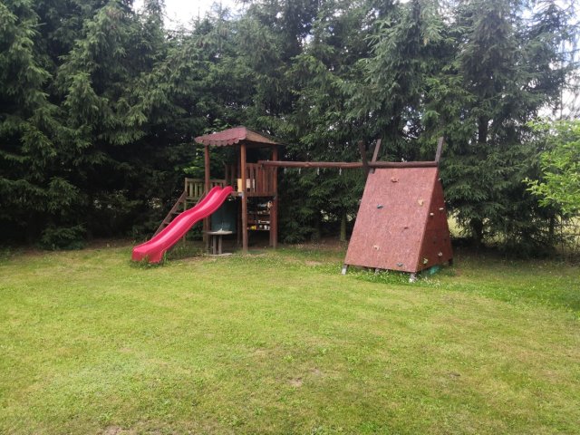 K dispozici venkovní posezení u ohniště se samostatným grilem, dále pak posezení s barem pod pergolou, dětské hřiště, trampolína, plynový vařič, základní nádobí, možnost napuštění bazénu. Užitková voda ze studny, suché WC. Parkování před zahradou.