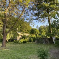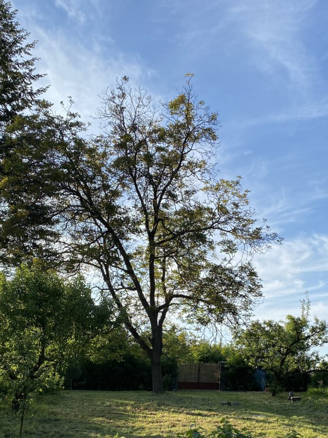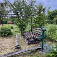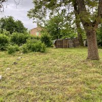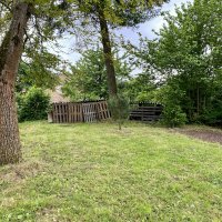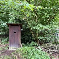 - Na konci zahrady je umístěná dřevěná kadibudka.