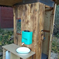 sprcha / umývárna - Umývárna - barel s kohoutkem a lavor Sprcha - malá zahradní (kbelík s hadicí a kropítkem z konve)