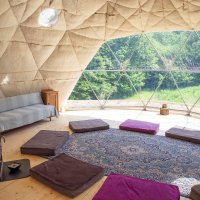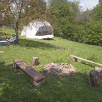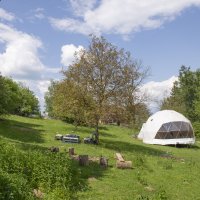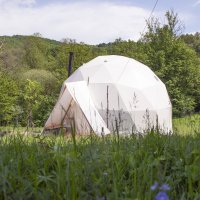 Navštívte miesto, kde sa nachvíľu zastavil čas - na konci Dolinky v magických Bielych Karpatoch. Stojí tu geodetická kupola, v ktorej máte možnosť zažiť nevšednú noc so svojimi ratolesťami, usporiadať ženský či mužský kruh, slobodne si zatancovať, či len tak byť chvíľu sám so sebou v svetlom zaliatom priestore prepojenom s okolitou prírodou. Milovníci kľudu a súkromia si tu prídu na svoje, okolo sú len lúky, lesy a remízky a doslova vám tu dajú dobrú noc srny, líšky, či divočáci :-) Spoločnosť vám bude robiť spev vtákov a naše ovečky. Súčasťou zážitku u nás sú raňajky v ševelení lístia pod orechom, či večerná opekačka. Pohojdať sa môžete na hojdačke pod korunou našej 100ročnej jablone.