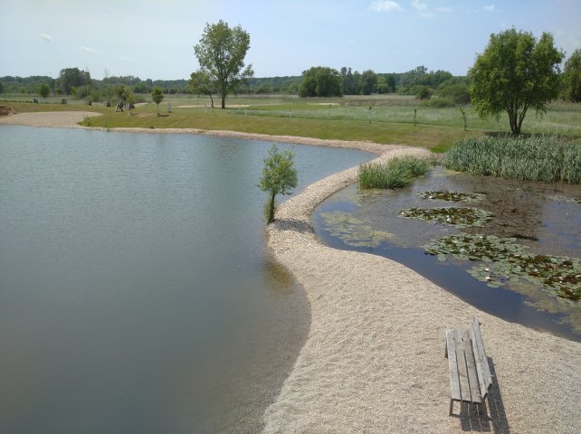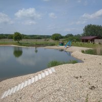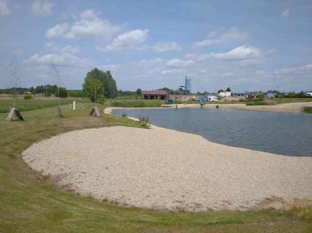 Velmi upravený pozemek u štěrkového jezírka. Vodní plocha je rozdělena na několik částí, kde jsou i zasázeny lekníny a orobince. K dispozici WC i sprcha, případně další vybavení. Pozemku jako takovému není co vytknout. Jediným nepatrným minusem je blízkost silnice, kde je malý až střední provoz, v noci je ale klid.