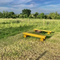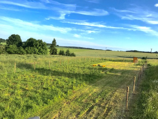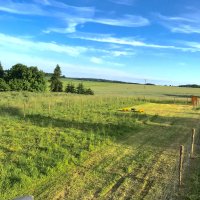 krásné, klidné místo! pozemek lehce z kopečka. Ohniště, lavičky, kadibudka, voda v barelu. Víc toho člověk nepotřebuje.