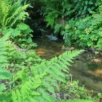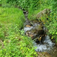 na pozemku horský potok pro otužilce (teplota vody cca 4°C)