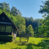 Pozemek včetně ohniště, WC, umývárny a sprchy mohou sdílet i další hosté (max. 3 skupinky - chata, stan, obytné auto). Pozemek je dostatečně velký.