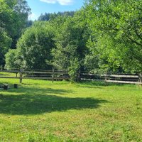 - k dispozici kanystry s pitnou vodou, doplnění k dispozici u majitelů na Rudoltické myslivně - cca 50m