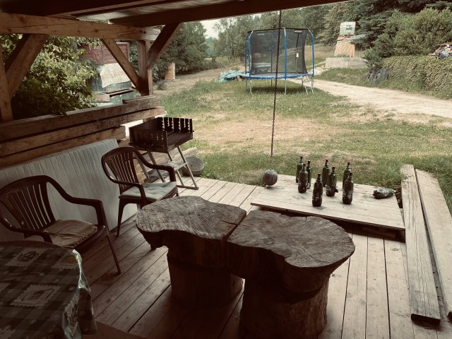 Super chajda, čistá, dobře vybavená (myci prostředky, ručníky, povlečení, utěrka, venkovní posezení), krásně teplá voda. Klidné prostředí. Dostatek zábavy - ruské kuželky, trampolína, ohniště.