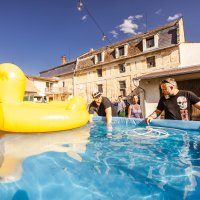 Dětské hřiště v areálu mlýna nabízí spoustu vyžití pro děti