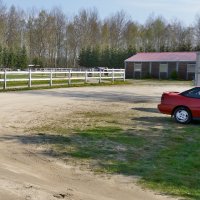 Stání na zpevněné ploše se nachází v oploceném malém rodinném jezdeckém areálu. Podél jedné jeho strany je málo využívaná silnice. Nejbližší lidské sousedy máme 500m a přesto tu není naprosté ticho. Klapání koňských kopyt, řehtání koní, křik divokých hus a jiného ptactva je úžasnou venkovskou kulisou. Překrásná noční obloha není rušena žádným městským světlem.