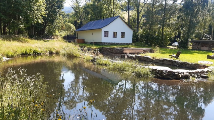 Rybník u chalupy (pstruh - Chyť a sněz) nebo nedaleký rybník asi 400m - možnost zapůjčit pruty - Chyť a pusť (300,-/den/osoba) - kapr, amur, štika, cejn, aj.