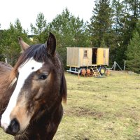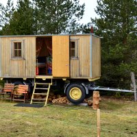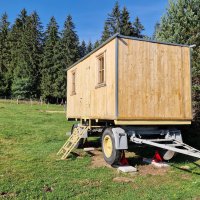 Mazlíčky je třeba hlídat, maringotka je umístěna na pastvině se zvířaty.