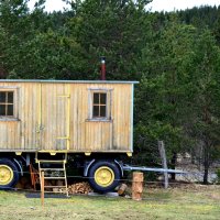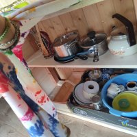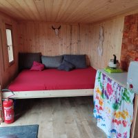 - Pitná voda je nachystaná v barelu a lze ji doplnit v hlavní budově.