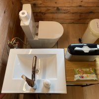 - Splachovací záchod, toaletní papír, umyvadlo se studenou vodou, mýdlo a papírové ručníky jsou k dispozici v zahradní chatce od dubna do listopadu.