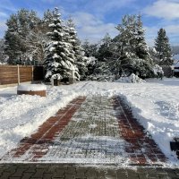 K pozemku vede kvalitní asfaltová, udržovaná místní komunikace. Za bránou následuje 8 metrů dlaždicových kolejí širokých 66 cm na každé straně. V rámci těchto 8 metrů je možné karavan, nebo obytný automobil parkovat i za špatného počasí. Zpevněná plocha s dlaždicovými kolejemi 66 cm je celkem široká 264 cm, průjezd bránou je 290 cm široký. Dlaždicové koleje jsou v mírném spádu od brány směrem dolů (stejně jako celý pozemek) a podle vlastních nároků je případně nutné mírné podélné výškové vyrovnání. Na dlaždicové koleje navazuje trávník zpevněný zatravňovacími dlaždicemi v délce 6 metrů, který je již v rovině. Tento zadní úsek ovšem není vhodný pro stání v nepříznivých podmínkách (sníh, vytrvalé dlouhodobé deště).