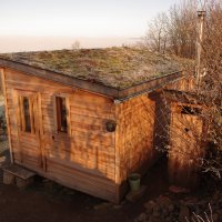toaleta - Suchý pilinový kompostovací záchod vedle domečku.