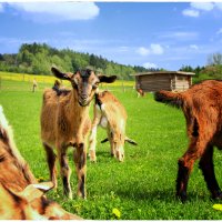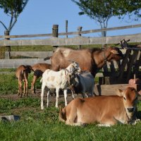Chata na kolech je součástí farmy s chovem koní ,koz ,ovcí a kraviček Jersey.