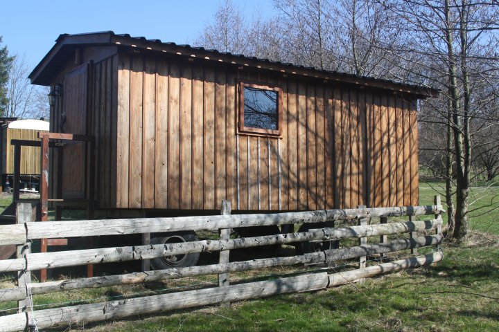 Moc příjemné ubytování. Vše bylo připraveno pro okamžité zabydlení i bez přítomnosti majitelů. Kompletně vybavené - vařič, nádobí, rychlovarná konvice, dříví na topení. Venku u maringotky teplá sprcha, kousek dál suchý záchod, který byl čistý a nebyl cítit. Využili jsme ohniště na buřty i vedlejší maringotku, kde je "samoobslužná hospůdka". Se psem nebyl žádný problém. Moc milí majitelé, využili jsme i vyjížďku na koních, koupili si domácí sýry a klobásy. Určitě sem naplánujeme další cestu.
