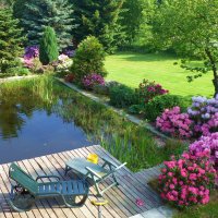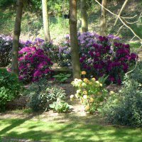 Zbytek zahrady vzhledem k nákladné údržbě a cenné sbírce rododendronů a azalek celkem asi 500 ks je přístupná jen v