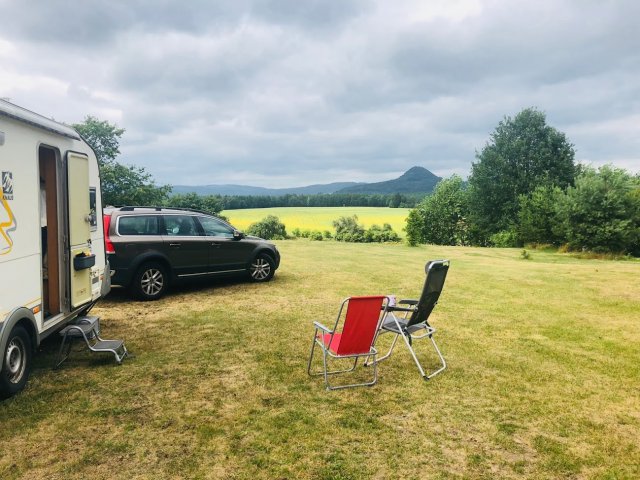 Na pozemku jsme osobně strávili víkend. Pozemek je opravdu krásný, udržovaný a hlavně s neuvěřitelným výhledem do krajiny. Díky velikosti pozemku je jednoduchá manipulace s karavanem. Na pozemku jsou elektrické přípojky i pitná voda. Po dohodě s majitelem i možné zajištění vylití WC (pouze v případě zelené eko chemie). Majitelé jsou velmi ochotní a udělají pro své hosty maximum. To hlavní proč do této oblasti jet je okolní příroda a krajina. Kokořínkso - Máchův kraj je opravdu působivý. V okolních lesích a cestách neleznete velké množství různých skalních útvarů, takže ideální program pro celé rodiny. Navíc přímo od pozemku vedou cyklostezky. V blízkosti pozemku je výborná a slušná restaurace, v obci také obchod s potravinami. Doporučujeme