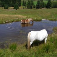 - Pitná voda je k dispozici z koňského napajedla (je pitná ) nebo po zazvonění u nás na farmě. Napajedlo se nachází cca 15 metrů od místa.