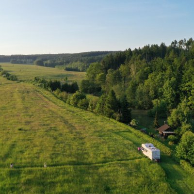 Kempování na divoko. Se souhlasem majitelů pozemků.