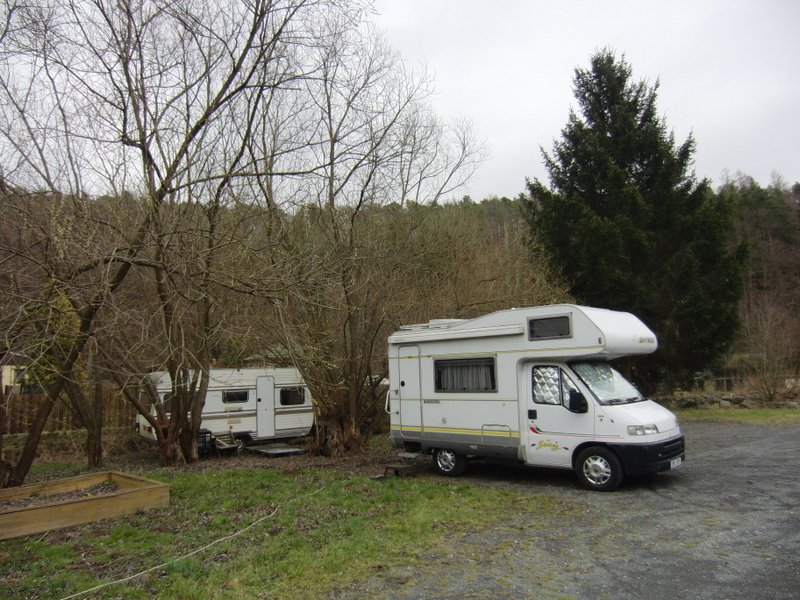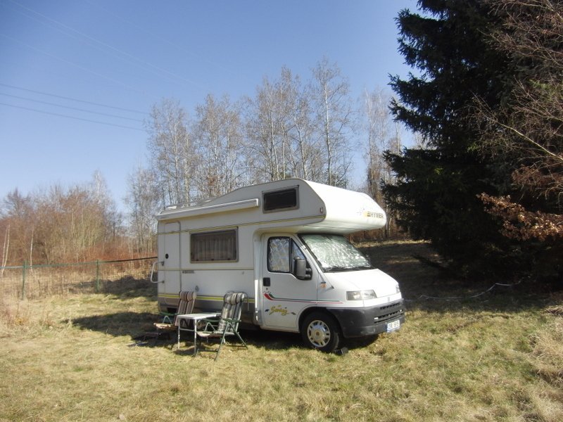 Zde nás čeká pozemek u lesa v blízkosti restaurace a vlakové zastávky a hlavně dost výrazná změna počasí. Z jara rovnou opět do podzimu. Parkování za hospůdkou U Součků na břehu Bojovského potoka nabízí stání jak na trávě ,tak na štěrku. Je zde výlevka chem.wc, el.proud a voda po dohodě v restauraci. Ale co je asi nejhlavnější v tomto mimosezonním období je naprostý klid téměř v hlubokých lesích. Ruší jen místní lokálka nebo krásně zpívající ptáci.