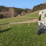 Nádherné místo s nádhernými výhledy. Dobrá příjezdová cesta, děkujeme za připravené dřevo na oheň. Pozemek je v kopečku, tak jsme karavan vyrovnávali. Krásná procházka po cestě nad les. Škoda jen, že tak foukalo.