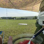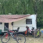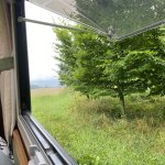 Krásné místo s výhledem do kraje, rovinka se našla. Blízko Macochy, Punkevních jeskyní a zámku Rájec nad Svitavou. Vjezd i za deště byl dobrý, výjezd zpět byl horší, u silnice jsme museli kvůli provozu zastavit a pak jsme nemohli vyjet. Dva dny pršelo. Naštěstí jsou v okolí milí hodní lidé, zastavili a pomohli nás roztlačit. Jinak velká spokojenost, pobyt jsme si užili. Večer i ráno přišly srnky.