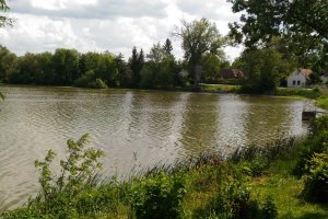 Klidná vesnička s ubytováním na pozemku u rybníku. A přitom kousek od sjezdu z hlavní silnice na Prahu.