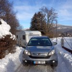 Když je velké množství sněhu vjezd na pozemek by pro dlouhé přívěsy mohl být problém, výjezd je do kopečka po trávě. Před příjezdem nám pan majitel ukázkově odhrnul sníh, děkujeme!