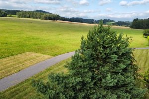 Výhled do kraje z oplocené louky