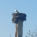Pěkné místo. Ráno i večer ptačí koncert. Na kraji pozemku kvetly sasanky. A čápi už jsou na komíně! Byli jsme spokojení.