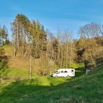 Velmi hezké klidné místo na udržované oplocené loučce s krásným výhledem na malebnou krajinu Českého středohoří. Paní majitelka milá a vstřícná, vše v pohodě. Příjezdová cesta po asfaltu, příjezd ze západu i s velkým autem bez problému. Louka pro stání pevná, ale svažitá, s nájezdy O.K. Přípojka elektro v místě, kohoutek s vodou je u domečku. V okolí mnoho turistických cílů pěšky i na kole, pěší i cyklostezka Varhany (bývalá železniční trať) je jen kousek. Hezký je třeba pěší výlet na vyhlídkové místo Rozsocha do Kamenického Šenova, kde je mimo sklářského muzea v provozu i nádraží muzejní železnice Šenovka na trase do České kamenice, dále na Zámecký vrch s vyhlídkovou věží s kruhovým rozhledem nejen na krajinu Českého středohoří a Českého Švýcarska, ale i Lužických hor a Kokořínska, dolů do České Kamenice - městečko s památkovou zónou, autobusem do Práchně na Panskou skálu (Varhany) a po cyklostezce zpět. Vřele doporučujeme, děkujeme za odpočinek s krásným výhledem a těšíme se zase někdy na shledanou.