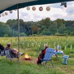 Krásné místo na zahradě na kraji obce s výhledem na vinice a Dunajovické kopce, na opačné straně Pálava. Paní majitelka velmi vstřícná a milá. Zaslaná přesná pozice místa trochu mate, vjezd na pozemek je z křižovatky u panelové cesty. Krásný je výlet přes Dunajovické kopce s výhledy na Pálavu a zakončením ve sklípku, no a samozřejmě Pálava (kopce i ta ve sklípku). Doporučujeme, děkujeme a příští rok na viděnou.