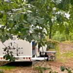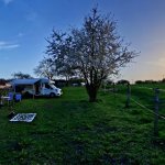 Zajímavé hezké místo u původní a tento rok nově osázené vinice. Pan hostitel příjemný a vstřícný, vše v pohodě. Příjezdová cesta částečně po panelce a dále k pozemku po zpevněné cestě je vzhledem k úhlu nájezdu a větvičkám spíš pro vany a vestavby. Louka pro stání mírně svažitá a celkem pevná. V místě dle popisu přípojka elektro, voda, kadibudka a ohniště. Umyvárnu se sprchou jsme nevyužili. Nedaleká silnice a železnice je sice tak nějak slyšet, ale nic zoufalého. V okolí mnoho turistických cílů pěšky i na kole. Hezký je výlet přes Mělník k vinicím u Turbovic nebo třeba opačným směrem podél Labe do Liběchova. Ochutnali jsme místní med a lokální vína i burčák - vše moc dobré. Děkujeme za pobyt a odpočinek a těšíme se zase někdy na shledanou.