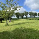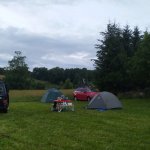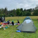Místo bylo posekané, připravené ohniště i malé posezení. Majitelka dokonce přišla nabídnout suché dřevo na rozdělání ohně po dešti. Romantiku trochu ruší pouliční osvětlení u cesty, ale v průběhu noci zhasne. Louka je velká, i s dalšími bezkempaři jsme se vůbec nerušili.