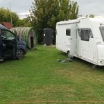 Místo je pěkné, velice vhodné pro milovníky vína a pro výlet po okolí. Jde ale hodně o to kdy tam výletník je. V pátek byl relativně klid, jen pár lidí, pohoda. V sobotu už bylo narváno a to všude, večer sem tam rozbitá sklenička (pozor pokud máte sebou psa), občas někdo někde leží protože už nemůže chodit a nebo ho tam někdo odložil :-) naštěstí lidi jsou jak hmyz a v noci se stahují za světlem a tak se natlačí do vinařství a k lampám a ty zrovna v okolí moc nejsou. Hluk nám nevadil, přes den jsme pryč a večer to utichne protože po celodenním ochutnávání už mají dost . Všechny restaurace byli plné, jedině objednat místo předem. Ve dne se tam pohybuje hodně ale opravdu hodně cyklistů, někteří podle stylu jízdy evidentně po ochutnávce vína :-) Ohledně pozemku vše ok akorát je poměrně velký a tím pádem se tam vejde hodně karavanů / stanů a pak to znamená že na WC a sprchy se čeká delší fronta. Chtělo by to vylepšit elek. přípojku, je to jen pohozená špulka kabelu na konci 4 x 230v a pak další rozdvojka a pak už to asi vypadne nebo shoří :-) Voda je na začátku pozemku, kohout + hadice ale pozor spojka GEKA, tak že běžnou spojku nenapojíte, bez hadice se blbě napouští a místní hadici zase nedáte do napouštěcího otvoru. Jinak maximální spokojenost a možno doporučit. Pokud zaprší je velká pravděpodobnost že tam zůstanete ale ve vinařství je traktor.