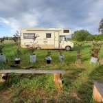 Krásný pozemek na Farmě s sociálním zařízením. Majitele vstřícní a velice milí. Jejich med je dokonalý.
