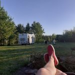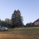 Pozemek je velky, dobre udrzovany, s krasnou vzrostlou tresni, u pekneho lesika. V dispozici bylo ohniste s drevem, pekna kadibudka. Prijemna pani majitelka. Pristupova cesta s koreny a kameny pro dodavku ok, obytnak asi hur. U zahrady slepicky, ktere se postaraly detem o zabavu. Vedeli jsme, ze v tesne blizkosti jsou domy, nijak to nerusilo. Naopak, mily soused nam pomohl s ohnem. Skoda jen, ze z pozemku neni moc vyhled do kraje.
