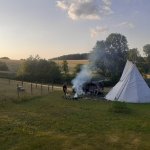 Kdyz jsme na misto přijížděli, uplne jsme se lekli, ze je pozemek opravdu blizko silnice. Tento dojem ale pri prijezdu az k teepee zmizel. Prostor kolem je dostatecny a silnice od cca 19hod prakticky bez provozu. Teepee je krasne, pohodlne, uplny glamping. U nej prostor pro vareni, prenosne ohniste, vesli jsme se i s autem, ale bre nej by bylo mista vic😉Na pozenku je dale cistounka latrina a jako novinka "koupelnicka" : ze sprchy tekouci voda ze studny: na omyti, osvezeni (to jsme v 34C fakt vyuzili😉). Po prevareni se da voda i pit. Beranci vedle v ohrade uplne neuveritelne pritulni😍Moc mili i napomocni byli i majitele. DEKUJEME!