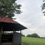 Odlehlý altánek na kopci v ovocném sadu.