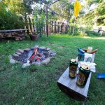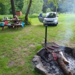 Skvělý grill u ohniště a je k němu k dispozici i příslušenství na kotlíkové vaření. Nám se tam líbilo...