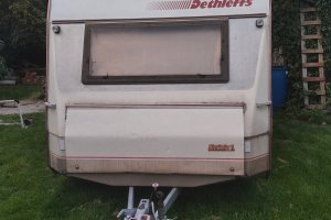 Nadšení cestovatelé s karavanem.