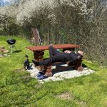 Pozemek velmi prostorný a udržovaný. K dispozici ohniště a pitná voda. I srnky nás přišly zkontrolovat 😉. To co pan majitel neovlivní , je práce v lomu ve všední den do 22h. a sousedi, co měli hlučnou návštěvu.