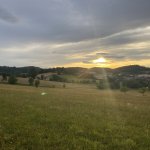 Pozemek vedle statku, s výhledem do polí, s ohništěm a posezením . Krásné klidné místo. Majitel velice příjemný, i v dešti nás přišel přivítat.