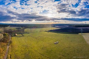 Tohle byla pecka, pohlednicové scenérie! Pozemek je sice neoplocený, ale žádný proud turistů se nekonal - je ale pravda, že jsme tam přes den nebyli a dorazili vždycky před západem slunce. Je to na kopečku u rozlehlé louky a dost tam fučí, takže ideální místo na pouštění draka 🙂